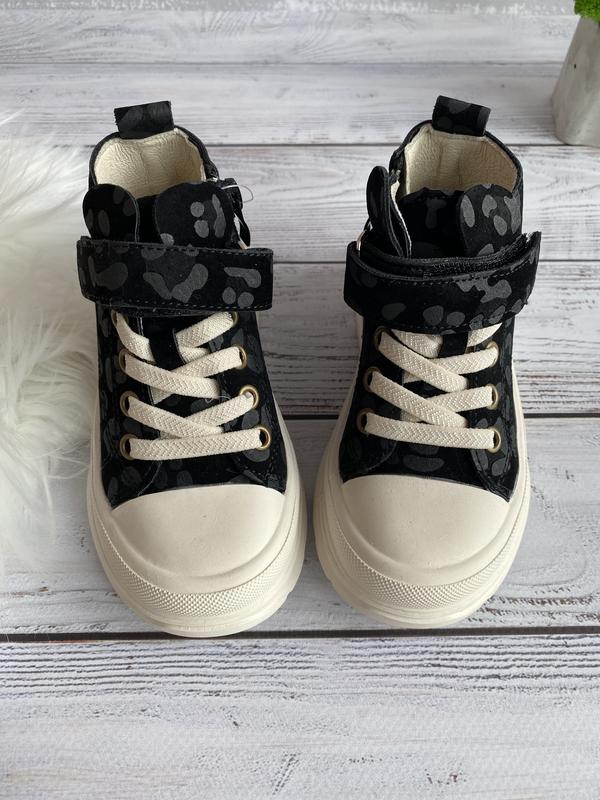 Легенькі,гнучкі та якісні хайтопи для дівчаток з прорезиненим носочком👌 Верх:якісна еко-шкіра. Середина:натуральна шкіра,перфорована устілка з супінатором.Фіксація на липучки та замочок. 21-13 см 22-14,1 см 23-14,5 см 24-15 25-15 см,5 см
