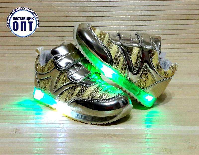 Заміри внутрішньої устілки 22 - 13 см устілка Матеріал: еколак + текстиль із люрексом і блискітками. Безшумно яскраві, ошатні та гарні! Підкладка — якісний текстиль. Устілка натуральна шкіра із супінатором. Підошва світиться різнобарвними вогниками під час натискання на п'яту Липучки чудово фіксують і регулюють повноту та підйом ніжки.