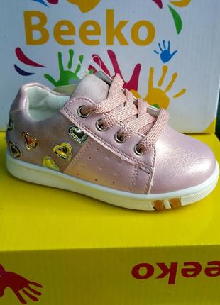 Якісні, зручні кросівки/туфельки для дівчаток ТМ Beeko Верх і всередині якісний кожзам. Устілка шкіряна з супінатором. Застібка-шнурок+змійка. Колір-пудра з перламутром. Виміри зроблені від краю до краю устілки В наявності: 22р.-14.3 см. Повернення немає, робіть покупки обдумано.