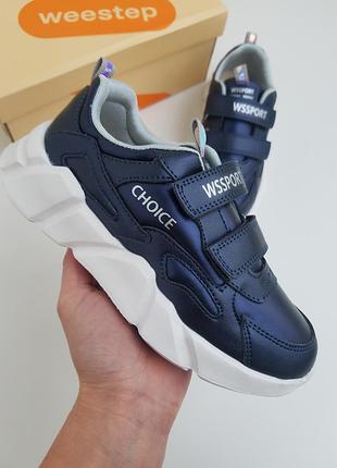 Кросівки для дівчинки підліткові Weestep в темно-синьому кольорі. Верх - шкіра комбінована. Шкіряна устілка із супінатором. Якісні та надзвичайно легкі ! 32 р - 20 см 33 р - 20,5 см ( 2 шт ) 34 р - 21,3 см 35 р - 22 см 36 р - 22,5 см ( 2 шт ) 37 р - 23 см