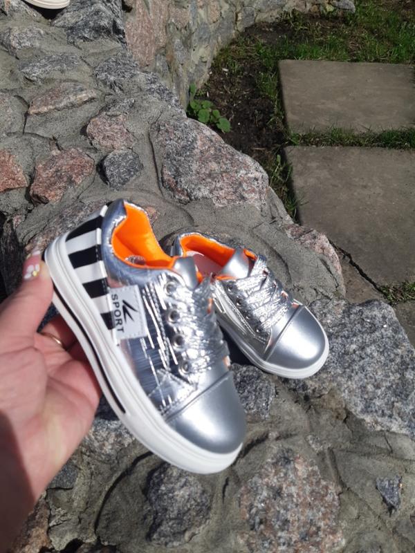 Стильные серебристые кеды для маленькой модницы. Подошва очень гибкая из облегченной резины. Шнурки для дизайна.Застегиваются на молнию.