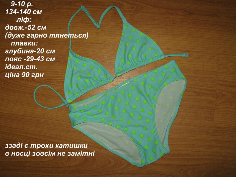 9-10 р. 134-140 см ліф: довж.-52 см (дуже гарно тягнеться) плавки: глибина-20 см пояс -29-43 см ідеал.ст. ціна 90 грн ззаді є трохи катишки в носці зовсім не замітні