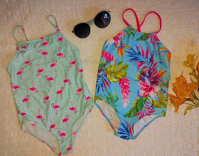 Идеальное состояние . Цена за один. 1 На 4года рост 104см (В цветочный принт) Пог 27см тянется длина купальника 45см 2.Купальник фламинго на 4-5лет рост 104-110см пог 27см тянется длина купальника 47см