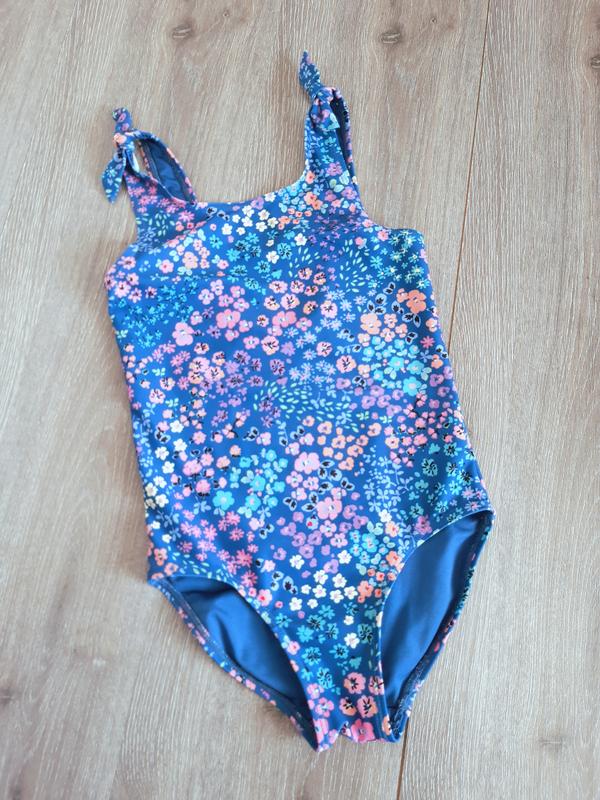 Синій купальник у квітковий принт. Довжина: 54 ПО груди 27.5