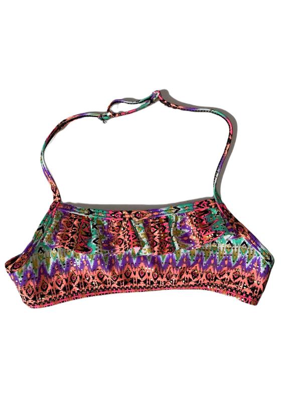 Купальный лиф с оборками спереди, на подкладке, регулируемой лямкой на шее без застежки. Замеры: предоставляем по запросу Состав: полиэстер 80%, эластан 20% Артикул: 7693817 Возможно повреждение бирки.
