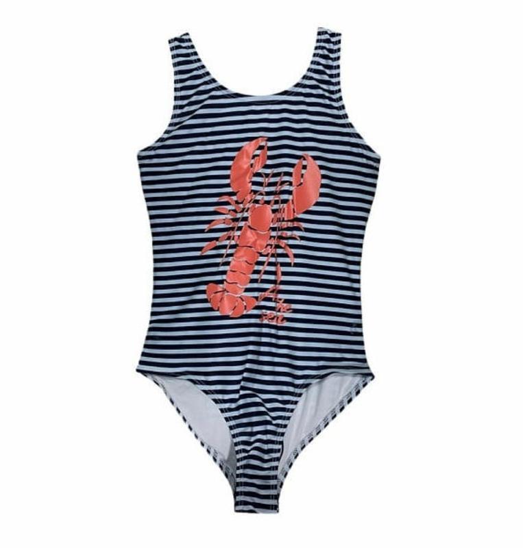 Купальник на дівчинку 6-8, 10-12, 12-14 років на зріст 122/128, 146/152, 158/164 см або р. S, Німеччина. Гарний суцільний купальник у смужку з малюнком раку. Заміри 146/152 Дл 62 Пог 32,6 НОС 32,3 Виріз 20,5 158/164 Дл 66 Пог 36 НОС 33 Виріз (ніжка) 20