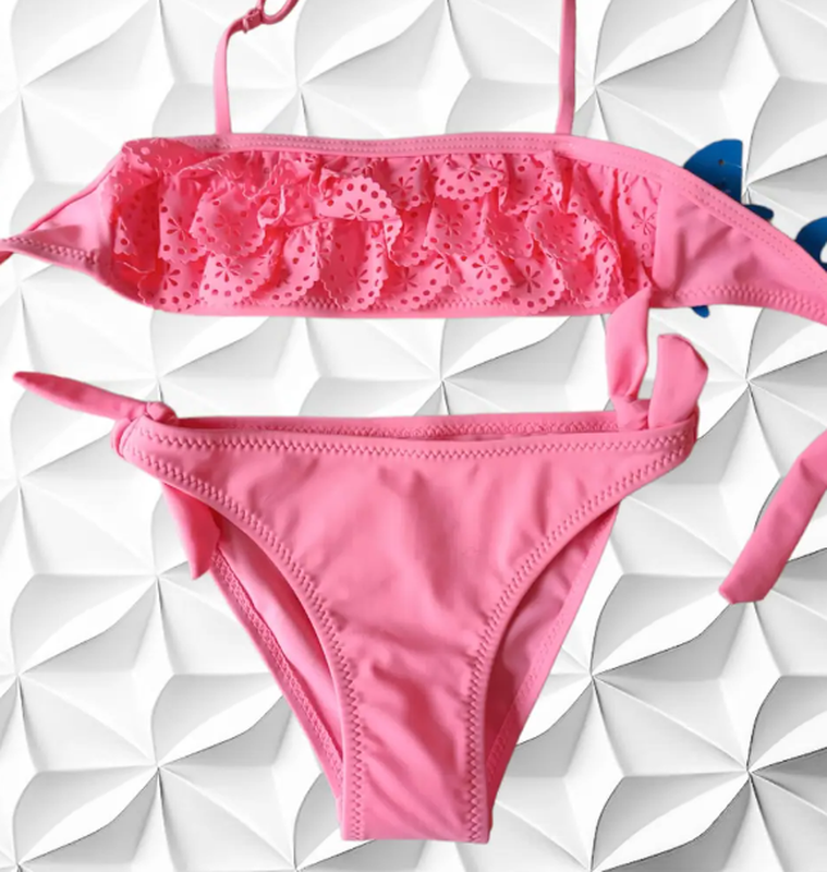 Купальник дитячий перфорація, рюші TERES Йде на наш 28 30 32 розмір Кольори: голобійка, рожевий, персик, салатовий