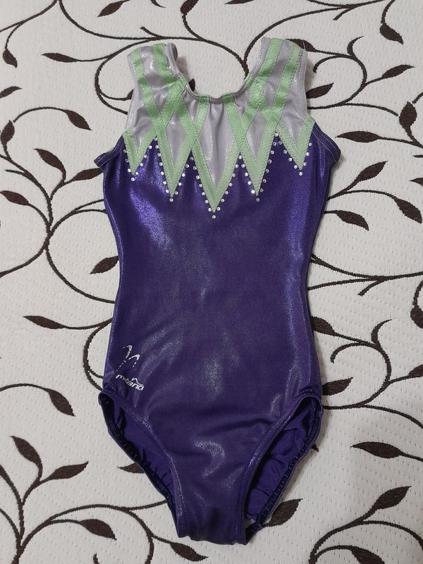 Купальник гімнастичний зі стразами на дівчинку 8-9 років, фірмовий. Довжина 52 см, напівобхват грудей 25 см, не розтягуючи