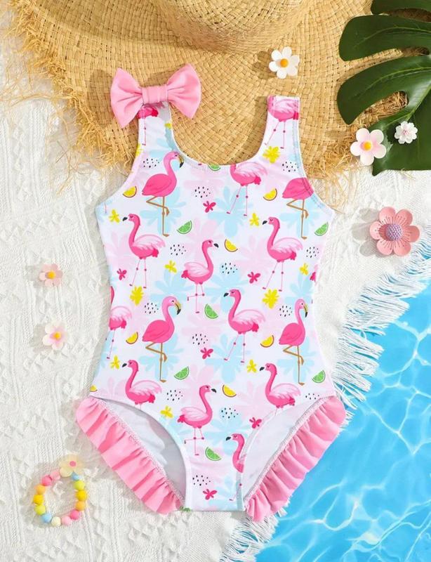 Купальник суцільний для дівчинки з фламінго та бантом на плечі ,5-6 років