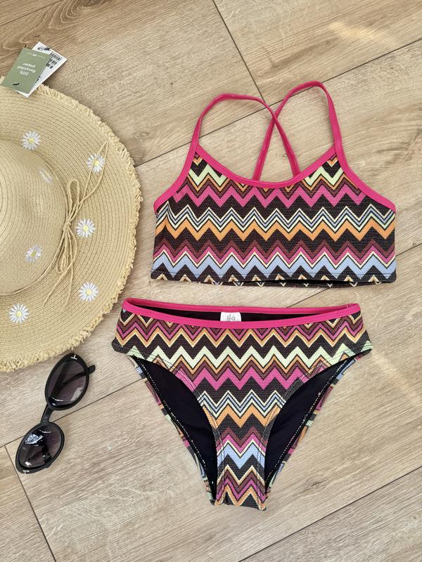 Стильний роздільний орнаментний купальник з ніжним блиском