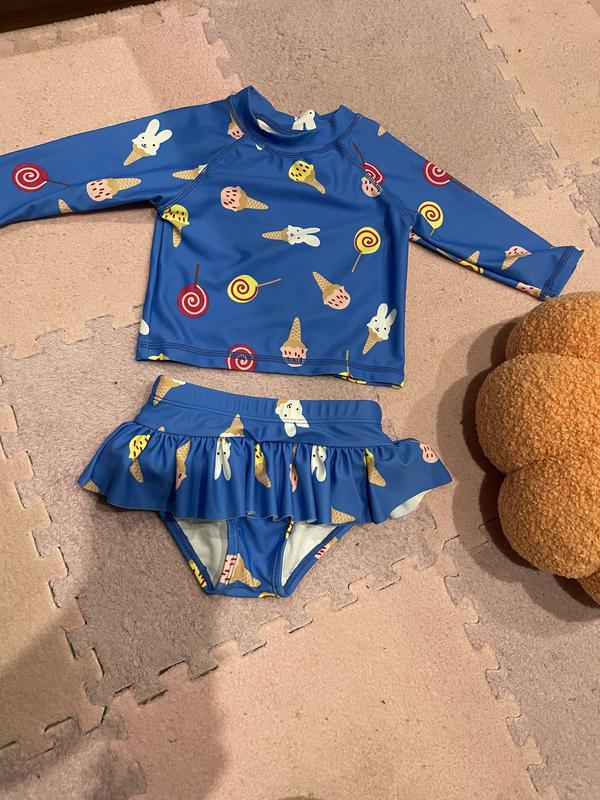 Купальник для дівчинки. Новий. Вік на 1 рік. Довжина верху 28 см.Довжина рукава від шиї - 27см. Нарівобхват низу - 20 см.
