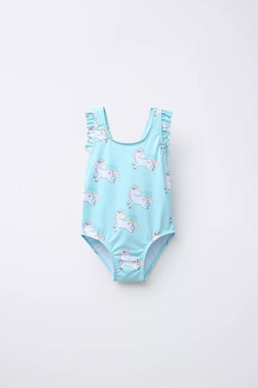 Купальник із круглим вирізом і бретелями. Принт у вигляді єдинорогів. БІРЮЗОВИЙ | 6668/543/402
