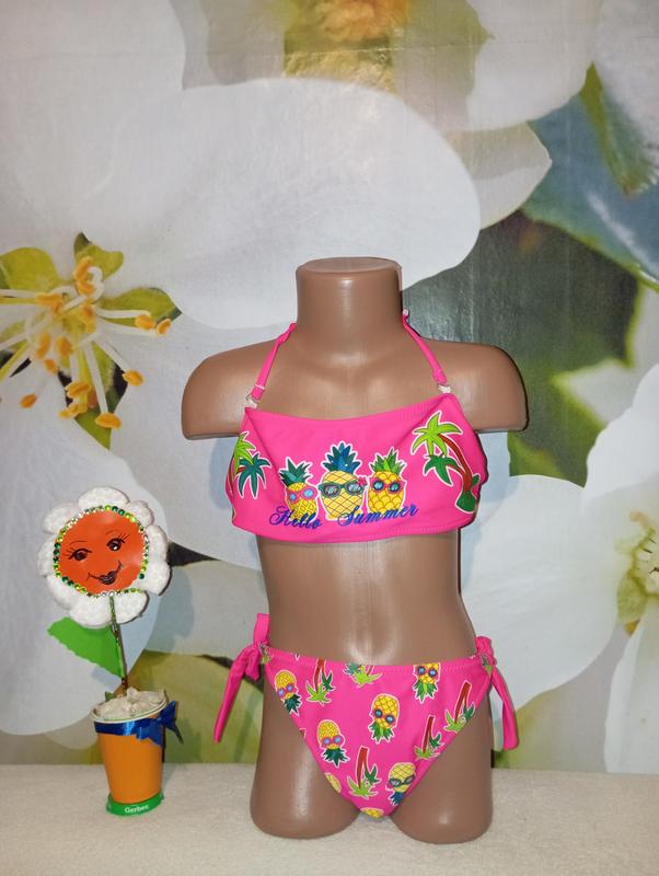 Яркий неоновый купальник на девочку в ананасовый принт , размер указан 36, подойдёт на 10/11 лет.Цвет розовый. Купальник состоит из Топа и плавок. Нюансов нет Замеры предоставлю по требованию Подписывайтесь на мои обновления 🌹🌺🌹