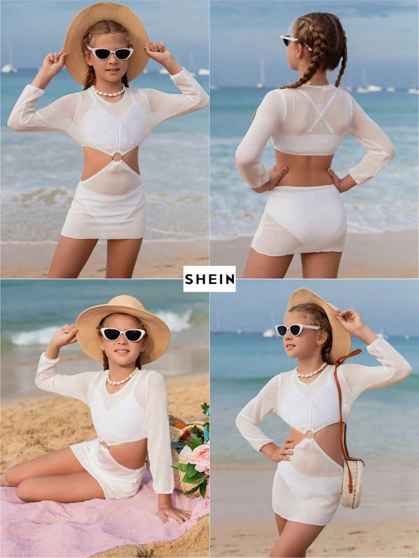Пляжное платье накидка для девочки кольцом-пряжкой и вырезами 11 лет / 140-146 см shein