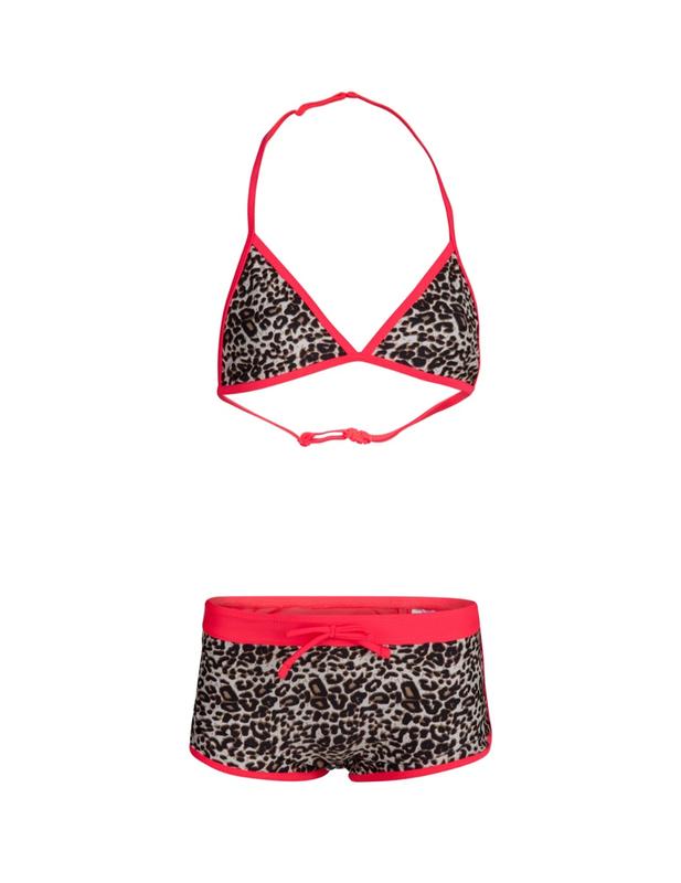 Яскравий та модний купальник для дівчинки. Верх — класичний трикутничок на регульованій зав’язці на шиї. Низ — зручною високою посадкою, із декоративною зав’язочкою попереду . Леопардовий принт у поєднанні з яскравою малиновою окантовкою робить модель особливо ефектною. Матеріал м’який, еластичний і швидко висихає. Стан чудовий, без дефектів. ПО-ПІД грудьми регулюється ширина чашки 14 довжина чашки 13.5 низ пояс 33.5 ПОБ 38.5 Довжина 24