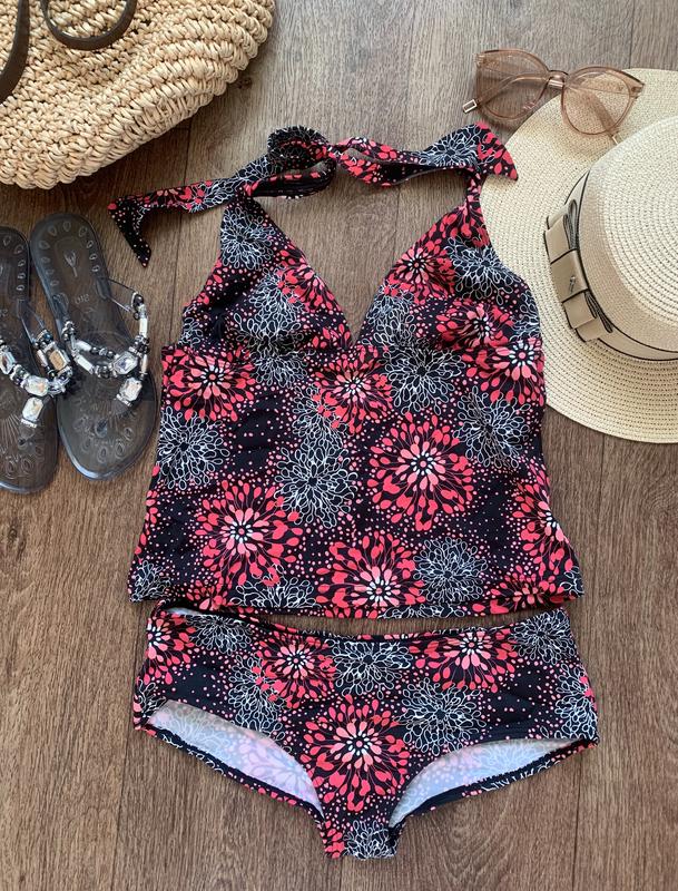 Купальник, верх - довжина по спині 23 см, полуохват 37 см, підійде на груди 2-3 розміру; низ-побіди 37 см