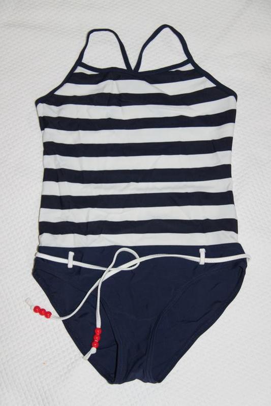 Гарний купальничек в морському стилі. Хороша фірма Buissonniere. Підійде на 9 - 10 років. На худеньку дівчинку.