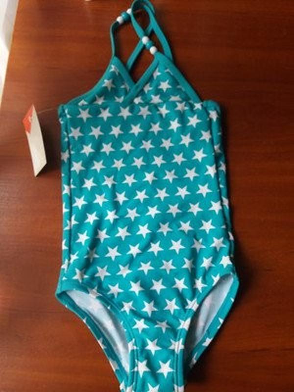 Новый купальник. Приятная расцветка в звезды и бусинки для украшения на бретелях. Размер 92.