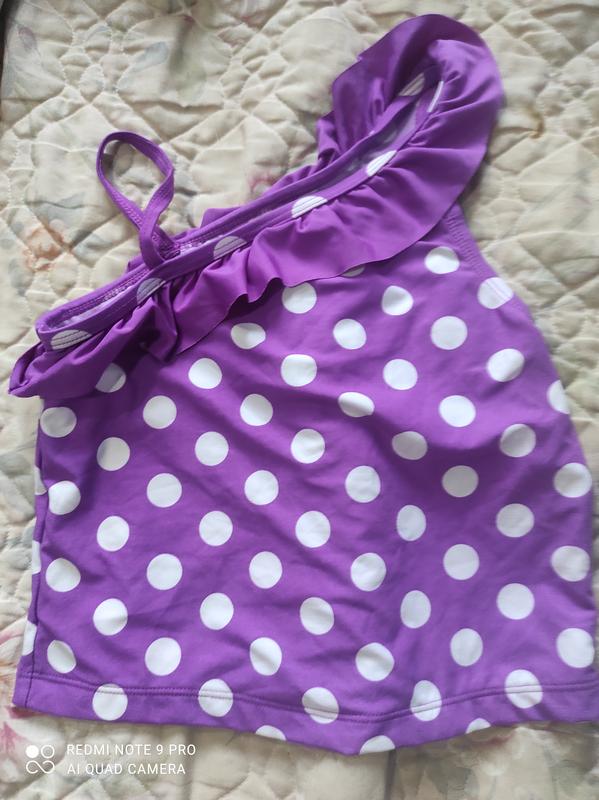 Яскрава маєчка, верх від купальника в басейн або пляж. Колір яскраво бузковий в білий горошок. Коса оборочка на одне плече. Дуже красивий і зручний варіант для пляжу, під будь плавки. На 6-8 років, відмінний стан та якість. Пересилаю. Питання в особистому повідомленні. Дивіться також інші мої оголошення.