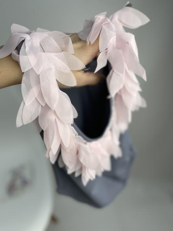 Купальник сірий з декором пудровий пір’я листочки