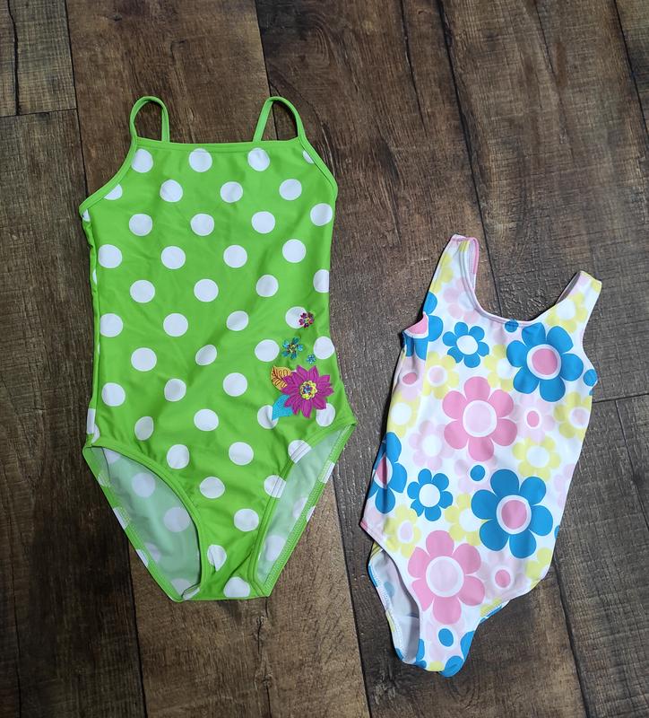Купальники зелёный в горох для девочки 7-8ми лет,на рост 122-128см. Купальник в цветы на девочку 1-2г,на рост 80-86см. Состояние отличное. Замеры и наличие уточняйте. 1шт.-155грн.