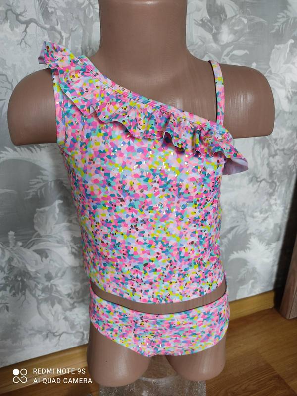 За бирці на 3-4 роки на ріст 98-104 в ідеальному стані. Майка: Довжина-30, ширина-26. Плавки: висота-17, гумка-24,5.