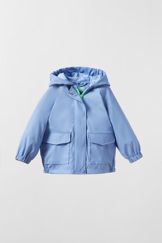 Прогумований дощовик з капюшоном і довгими рукавами. Застібка-блискавка неонового кольору під планкою. Передні накладні кишені з клапанами. Застібається на кнопки. Принт на грудях. ЗОВНІШНЯ ЧАСТИНА ОСНОВНА ТКАНИНА 100% ПОЛІЕСТЕР ПОКРИТТЯ 100% ПОЛІУРЕТАН ПІДКЛАДКА ОСНОВНА ТКАНИНА 100% БАВОВНА ДОДАТКОВА ТКАНИНА 100% ПОЛІЕСТЕР