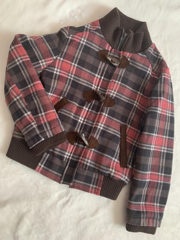 Курточка Бомбер від італійського бренду Terranova, на зріст 138-134см. З м'яким якої пальтової тканини, кишені і застібка із натуральної замші. Стан нової, ідеальний. 📏Пог 40 см, довжина по спинці без горловини 45см., рукав 48см 📦 Відправляю «безпечною оплатою», укрпоштою, новою поштою, джастін та міст.