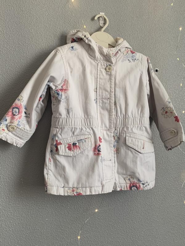 Дуже гарна та тепла курточка -плащик від Gap на 3 -4 рочки . Заміри по запиту Є маленькі плямки , думаю вивести можна