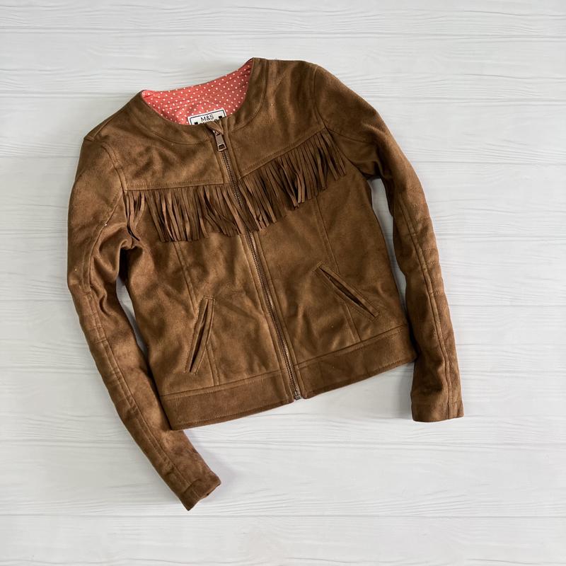 Крута куртка під замш від M&S . 🔅9-10р. 🔅Довж.44.5 🔅Шир.38.5 🔅Рукав 51 🔅Дуже добрий стан