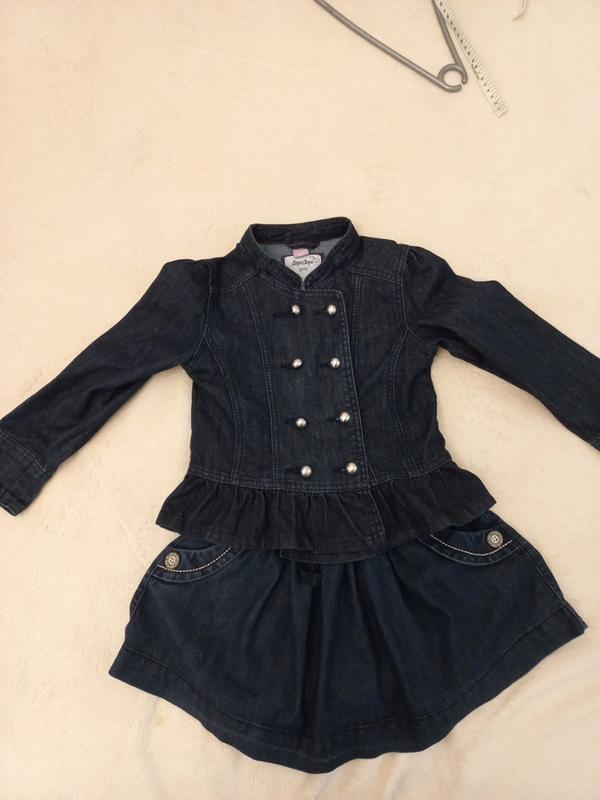 Куртка джинсова ,4-6 років, дуюе коасиво виглядає на дівчинці.дож.38,плечі 29, рукав 42,ПОГ 33, ПОТ 32 .Спідничка також продається,ми вдягали костюмом.