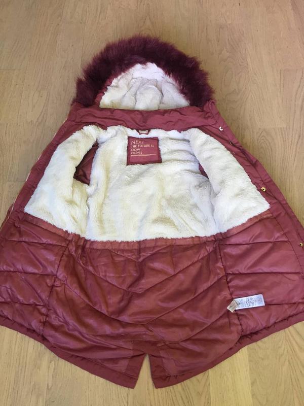 Куртка парка зимова Next з непромокаючої тканини. Якісні матеріали та фурнітура. Гарний дизайн, симпатично, охайно виглядає. Тепла, зимова, капюшон утеплений хутром, не знімається, на хутряній підложці вверху, внизу утеплювач типу синтепона. Оздоблена золотистою фурнітурою( в деяких місцях трішки злізла позолота, але не критично). Внизу з боків кишені на кнопках, утеплені флісом. В рукавах внизу щільні трикотажні манжети. Красивий теракотовий колір. Розмір вказаний 8 років, 128 см На фото моїм онучкам 7,5 років. Тому орієнтуйтесь на заміри: Плечі 33-33,5 см По грудей 39 см Довжина рукава 44,5 см+ 1 см манжети, які виступають з рукавів Довжина куртки по центру спини 69 см ( спереду коротша). Верх: 55% бавовна, 45% поліестер Нюанси: - фото 2- розводи по спині, напевно від прального порошку, не виполоскався ( донька з дітьми була в Польші, там випрала зимові речі, по приізду передала мені на продаж, вона навіть не звернула увагу на ті плями...) - фото 7 і 8 - плями від фарби, напевно, акрилова. Фіолетову парку продаю також за 800 грн, вона без нюансів. Теракотову продаю за 500 грн, думаю, хімчистка допоможе позбутися плям. Можливо, хтось має хист зробити це без допомоги хімчистки... Куртка якісна, достойна знайти свого покупця.