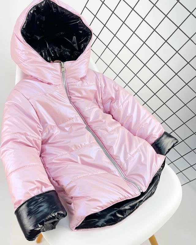Два в одному двохстороння куртка демісезонна рожева та чорна
