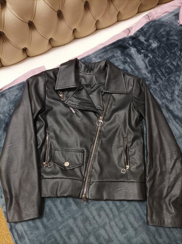 куртка-косуха для дівчинки в гарному стані, еко-шкіра, лише один раз одягнула, замочки працюють, довжина по спинці 45см, ширина 40см, рукав 52см.