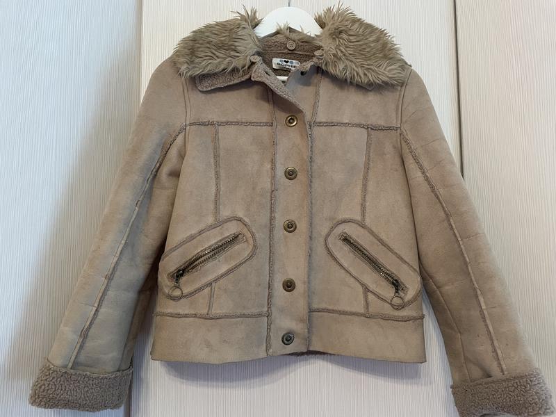 Куртка/ дублянка на флісі , в хорошому стані , комір знімається , рукава можнв регуляти під потрібну довжину ( на фото видно) , чудова якість, французька фірма Sophie Розміри: Довжина від плеча -51 р, максимальна довж. рукава -61, але можна регулювати довжину