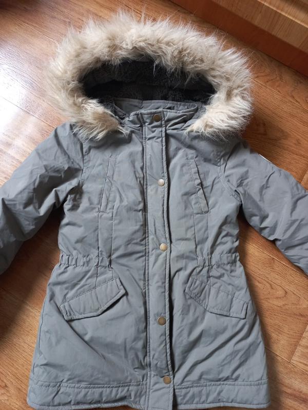 Довжина 58,рукав 45, плечі 31, у грудях 38 . На капюшоні хутро відстібається.Тепла.