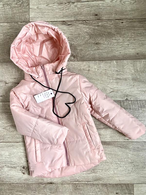 Красивая пудровая демисезонная курточка на девочку,капюшон глубокий сьемный,спинка удлинена.Размер 98,104,110,116,122см