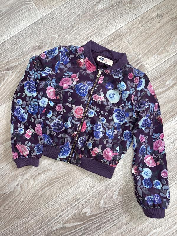 бомбер на подкладке. есть небольшой дефект, подтянутость. Фото есть. 5-6 лет H&M длина 37. ПОГ 35. рукав 43