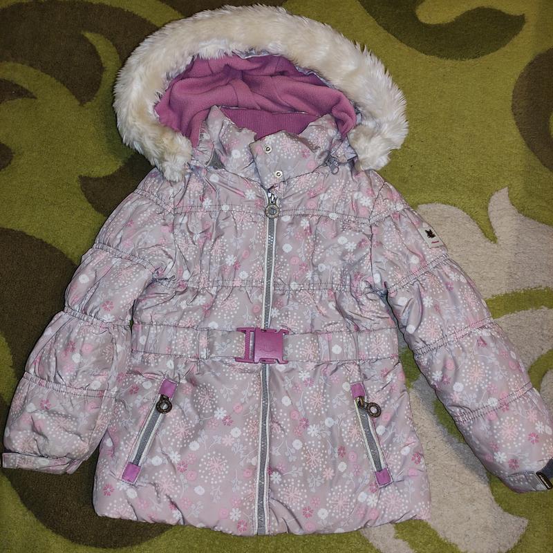 Куртка в зорошем состоянии.капюшон снимается,мех снимается,внизу подтягивается шнурком с фиксатором длина 45,рукав 37,грудь 33,талия 32.размер 104 (4 года).смотрите другие мои объявления.