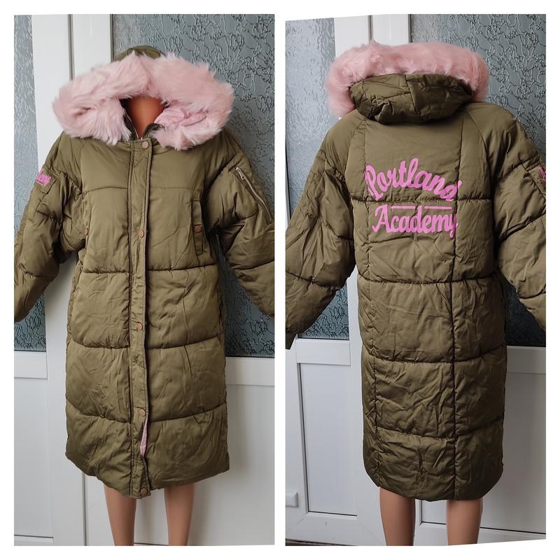 Нова куртка плащ Розмір хс с Замочок розсувається з обох сторін Хутро на капішоні можна зняти Кишеньки є і вгорі і внизу Ззаді напис Без бірки пог 55 см по верху куртки рукав від плеча 70 см довжина 100