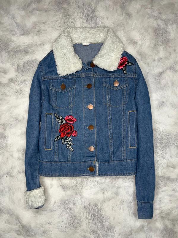 Джинсовая курточка с вышивкой Состояние отличное без дефектов 9-10 лет Длина 43. ПОГ 37. Рукав 49