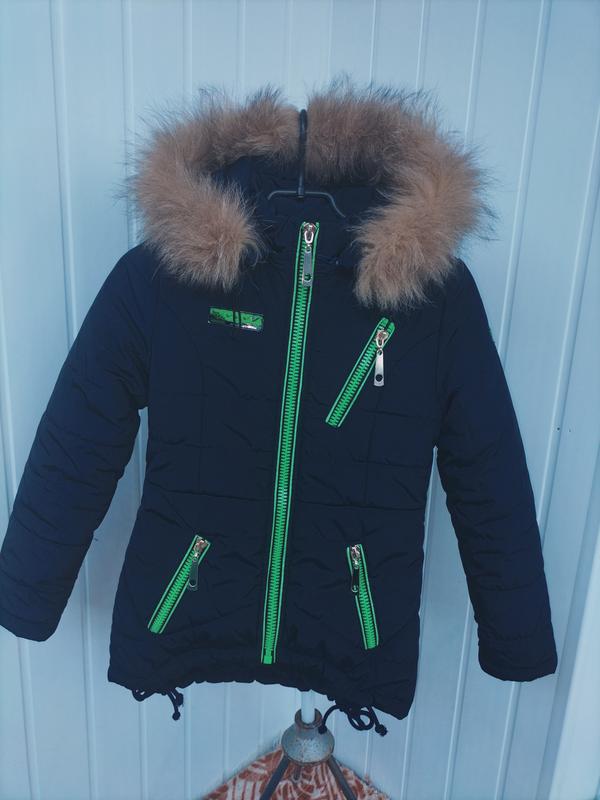 Дуже тепла куртка-парка для дівчинки, стан ідеальний, носили дуже мало, утеплювач - холофайбер 200 + овчина по спинці, капюшон відстібається, хутро на капюшоні не відстібається, натуральне (єнот), не линяє. Рукав можна підкотити, всередині - трикотажні манжети. Плечі 35см, пог 42см, пот 40см, поб 47см, рукав від плечового шва 56см, довжина ззаду 69см, спереду 57см.