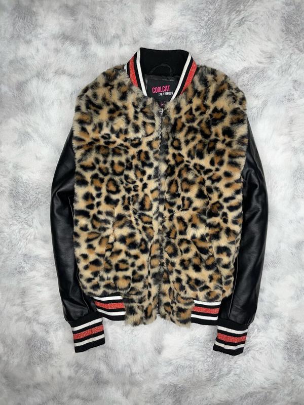 Хутряний бомбер зі шкіряними рукавами Спереду кишені Стьобана підкладка Демисезон Стан ідеал без дефектів CoolCat 7-8 років Довжина 47. ПОГ 41. Рукав 48