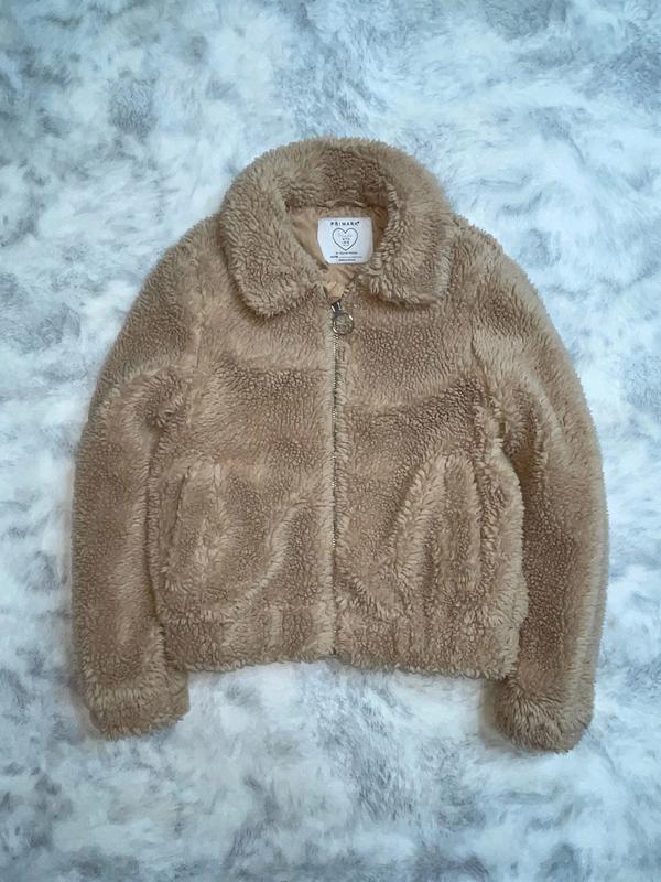 Демисезонная куртка шерпа Подкладка полиестер Без наполнителя 2 кармана Воротник стойка Защита подбородка Состояние идеал без дефектов 🏷Primark 9-10 лет Длина 45. ПОГ 42. Рукав 51
