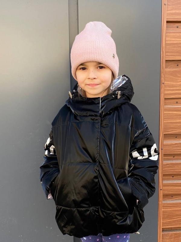Куртка INSTA демисезон арт: 0719 ⚠️ Размер: рост 122!!️ Тканина: плащівка оксамит Наполнитель: холлофайбер 100 Подкладка: нейлон Застежка: молния; кнопки Капюшон: не отстегивается; воротник стойка Є утяжка резинка по низу куртки На рукавах принт INSTA серебряного цвета Цвет: черный 🔹Замеры: Рукав от горловины/ ширина куртки/ длина по спинке ✅Рост 122: 53/ 88/ 47✅