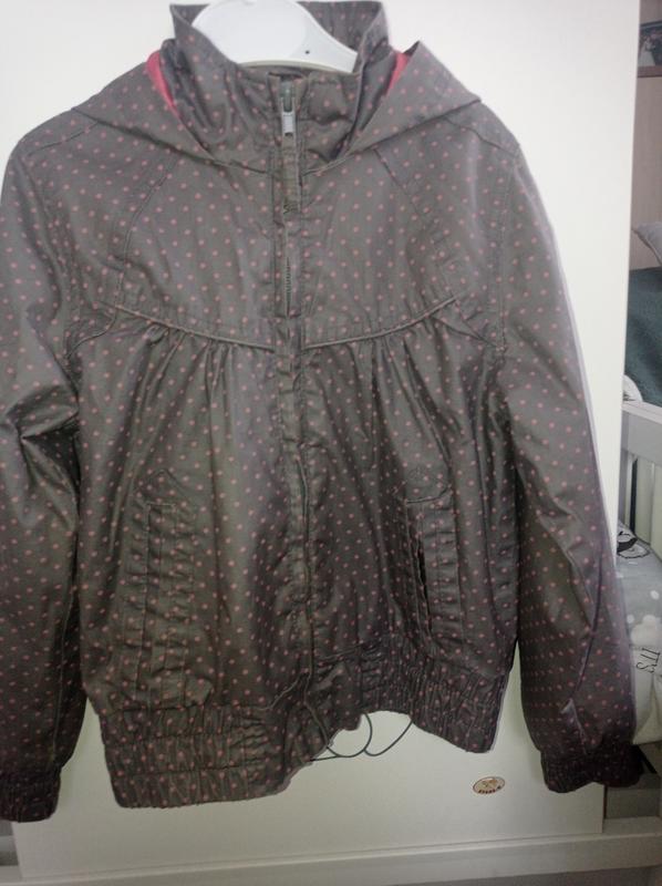 Весняна курточка на дівчинку, 4- 5 років! Сірий колір, в дрібний рожевий горошок. Стан: відмінний.
