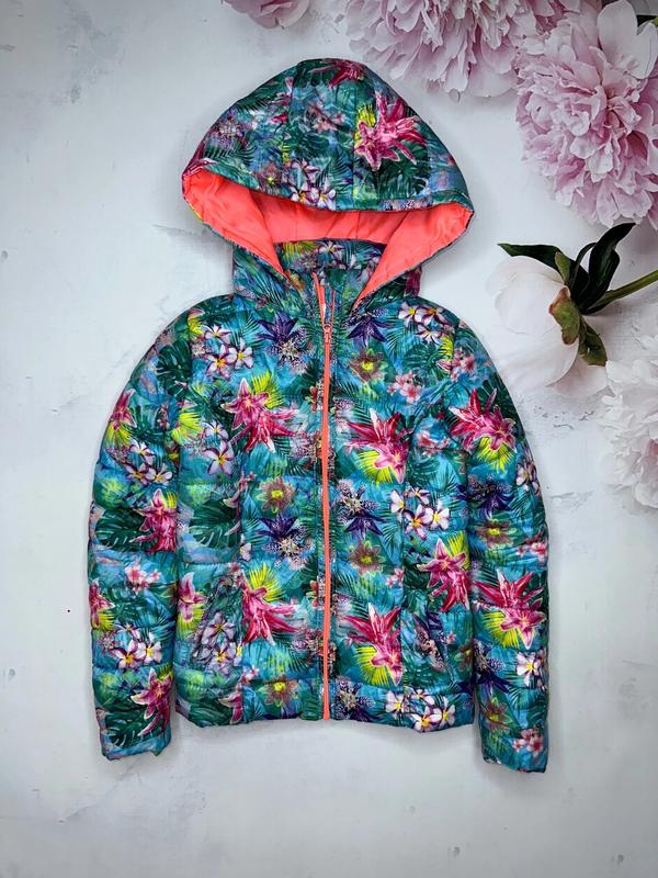 Демисезонная курточка яркой расцветки По бокам 2 кармана Застежка на молнию Высокая горловина Подкладка полиестер Состояние очень хорошее 10 лет/140 р Длина 49. ПОГ 38. Рукав 52