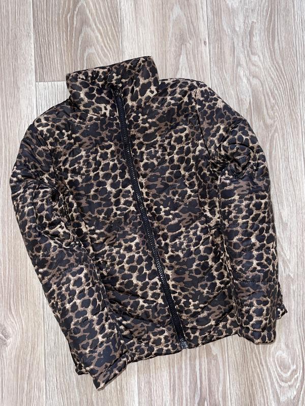 Демісезонна курточка леопардового забарвлення. Стьобана модель не дасть збитися наповнювачу Підкладкова тканина поліестер Високий комір З боків 2 кишені Нова, але без бирки (сток) 🔹5-6 лет/110-116 (8) Длина 45. ПОГ 36. Рукав 43 🔹7-8 лет/122-128 (14) Длина 49. ПОГ 39. Рукав 49