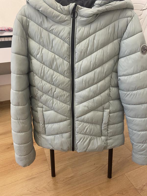 Курточка приємного мятного кольору. Розмір 152 На замочку з капюшоном, з карманами. Майже нова. Одягали кілька разів. Стан ідеальний. Всередині темно сіра. Підкладка ціла. Весна-осінь. Довжина куртки 54 см