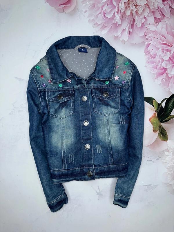 Джинсовка куртка с вышитым рисунком Состояние отличное без нюансов 8-9 лет/128-134 Длина 41. ПОГ 36. Рукав 45-55